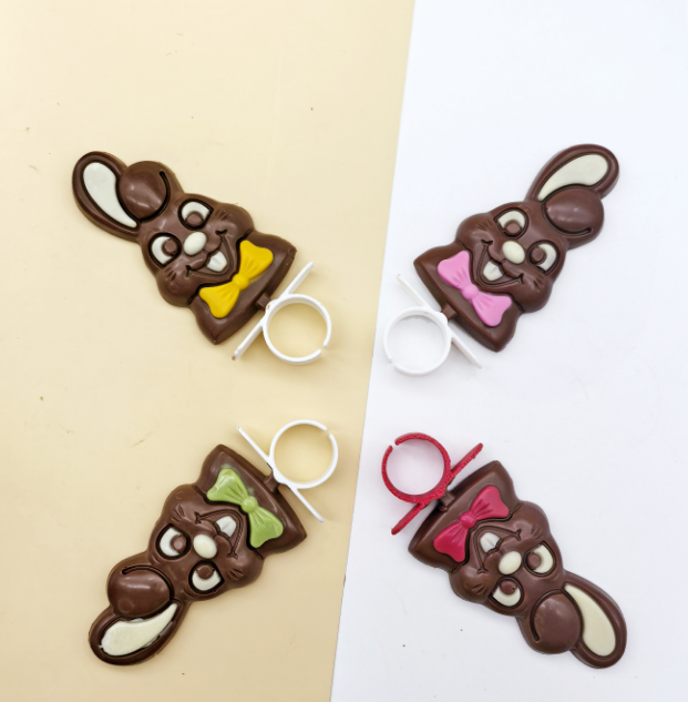 One shot, 2 colors, bar chocolate can be made by this line only need to change the depositing plate and demolding plate.